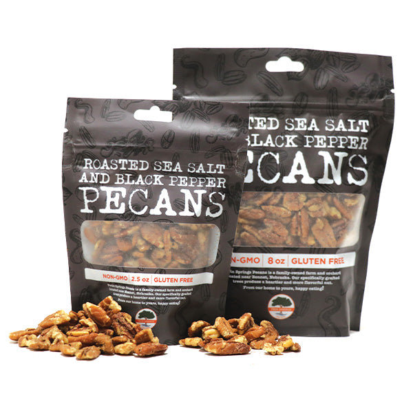 Do you like your country with western? Do you want cake and plan to eat it too? Then our premium roasted pecans with sea salt and cracked black pepper are for you. Why settle for just salt when you can have salty goodness with a bit of spice?